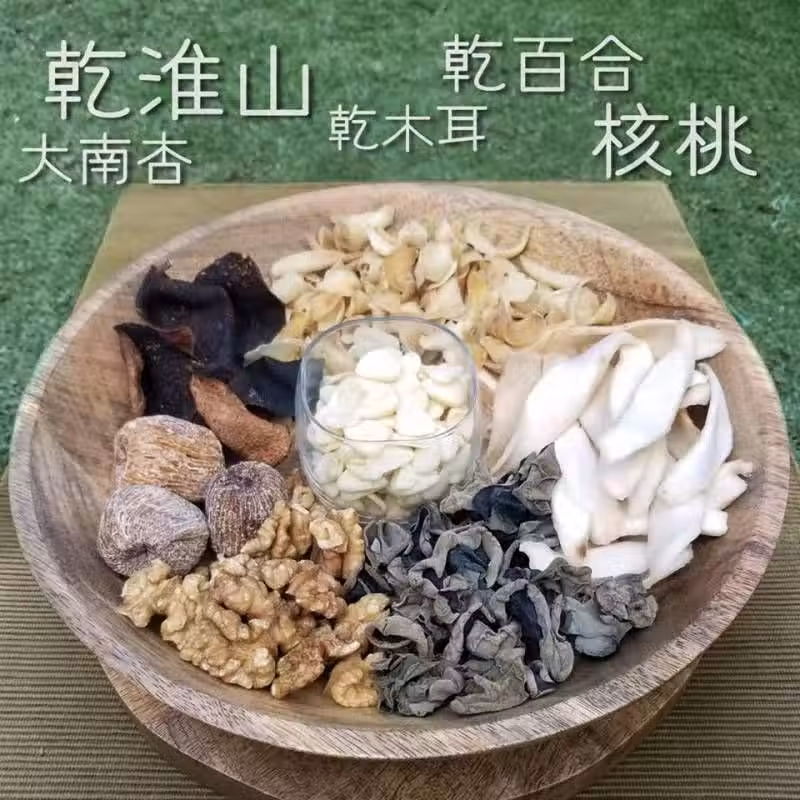 干淮山、干百合、干木耳、核桃、大南杏配蜜棗、果皮