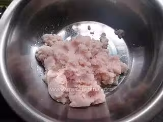 6. 攪成細膩的魚蓉放進乾淨的盆里