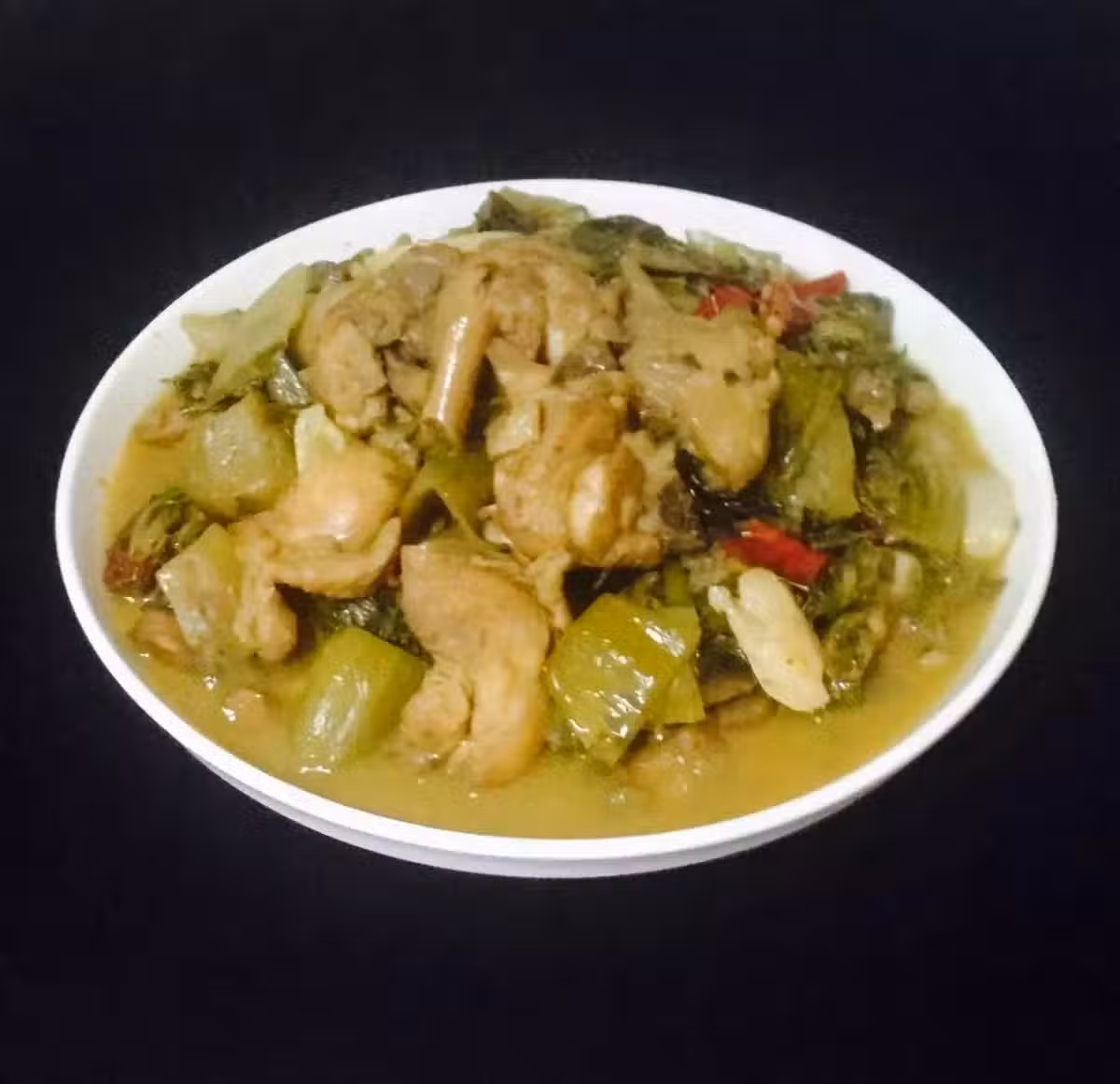 用料 雞腿 3隻(主料) 酸菜 250克 干辣椒 10個(輔料) 大蒜 1頭 花椒 20粒 十三香 1小匙(調料) 雞精 2-3克 料酒 15ml+15ml 生抽 20ml