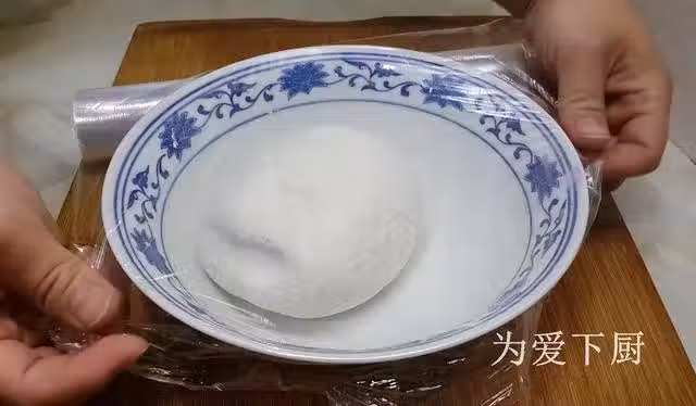 二十分鐘以後,去除保鮮膜,再揉兩三下。