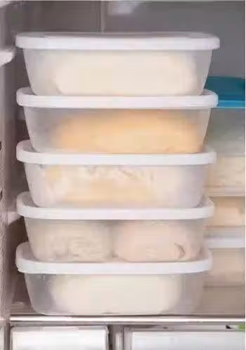 09冰箱內的溫度在 7℃左右,放置8小時,醒發後的面團會膨脹到1.5~2 倍。如果是蔬果室的話,溫度會高一些,所以醒發速度會更快。(冬天可以放在蔬果室)