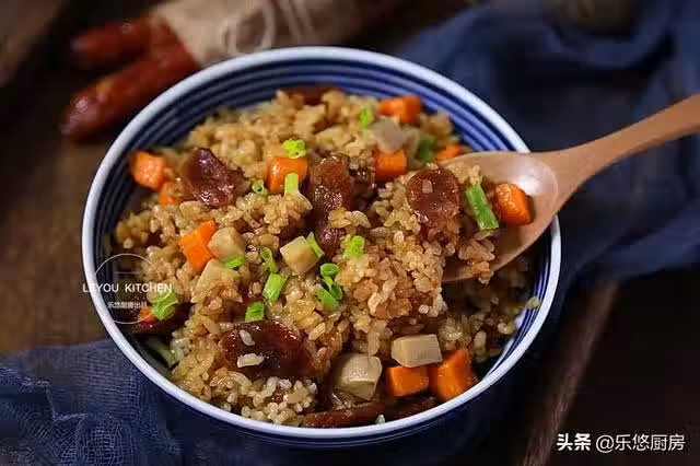 1、準備食材。大米1碗、杏鮑菇1或2根、臘腸3根、胡蘿蔔1根。