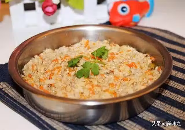 4胡蘿蔔去皮後切碎,或者有工具刨碎亦可;胡蘿蔔馬蹄蒸肉餅的做法步驟4