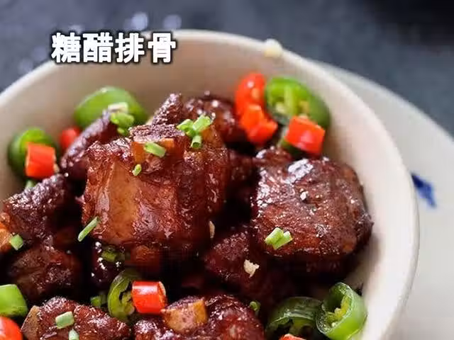材料排骨 10-15小塊料酒 1湯匙醬油 2湯匙白糖 3湯匙米醋 4湯匙水 適量生薑 5片大蒜 2粒