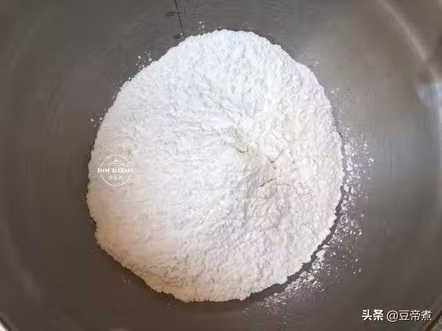 4、把糯米粉倒入盆中,然後燒開水邊攪邊倒攪和一下。使部分糯米粉成為「燙麵」的一種形式,再倒入滾燙開水的時候要注意掌握好水量。
