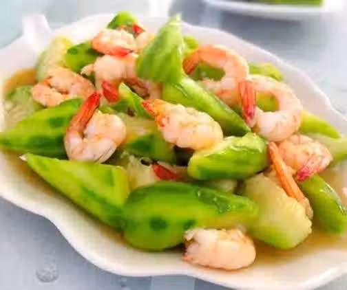 5、放入蝦仁和絲瓜一起翻炒均勻