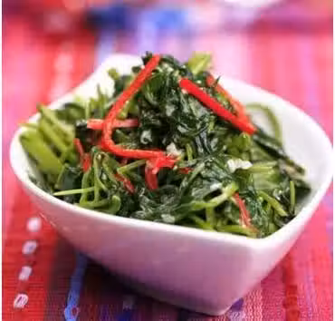 空心菜500g,紅尖椒2個,腐乳3塊,腐乳汁少許,細砂糖1茶匙,細鹽1/2茶匙。