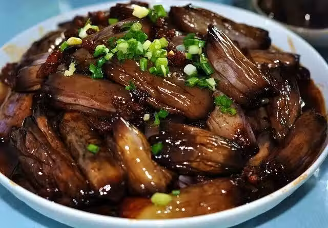 茄子;肉末;蒜;蔥末;生抽;老抽;糖;香油