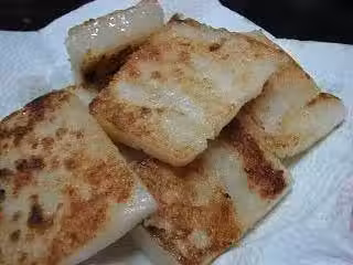 蒸好的蘿蔔粄也可以放涼後再切成小塊用煎鍋稍為煎下,更香更好吃。