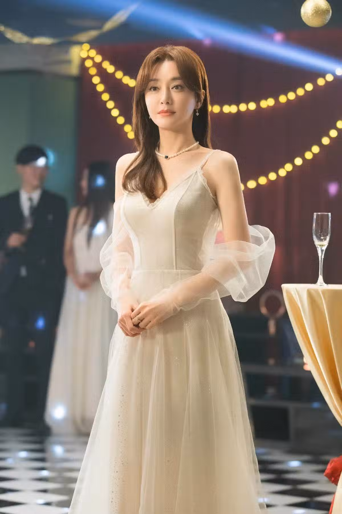 裙裝的領口對於整體的效果來說至關重要,在很大程度上決定著裙裝的風格走向,而且在駕馭的時候更容易表現出時尚感,像是秦嵐身上這條薄紗拼接的落地長裙,以V字領來襯託身材優勢,立體線條在腰線的位置和裙擺過渡,表現出的自然拼接效果不可忽視,在裙擺的薄紗中融入細膩的亮片,在光下的細閃也更有質感。雪紡的面料輕盈中帶著大氣高級的質感,尤其是融入到裙裝當中,在駕馭的時候所表現出的風格也更考驗氣質,不過秦嵐的氣質更多的還是傾向溫婉寧靜的效果,穿著一襲雪紡長裙,利用不同的配色不規則的拼接,既能體現異域風格的效果,同樣又不會顯得輕浮,在表現力上更為自然,最主要的還是能夠利用經典的版型穿出與眾不同的效果,髮型和妝容簡單的設計一下,大氣高級的效果立馬迎面而來。