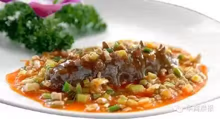 6、將海參在薑片和蔥段水中稍煮片刻, 3f4b 瀝乾備用。