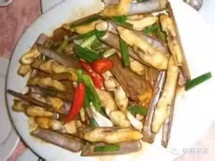 3、烹入料酒,加鹽、生抽、白糖炒勻,等蟶子殼張開後即可出鍋裝盤。