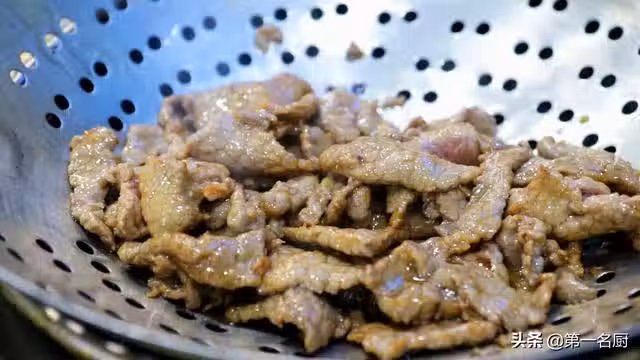 6.鍋內添入少許食用油,放入姜蒜末和泡椒炒香, 倒入青紅辣椒快速翻炒,加入味極鮮5克,蚝油3克,白糖1克提鮮,胡椒粉1克,倒入牛肉,淋入料酒5克,快速翻炒15秒,勾入少許薄芡翻炒均勻,再放入蔥段和香菜,簡單翻炒即可關火起鍋裝盤。