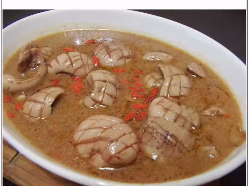 1.豬腰用米酒洗凈後,切開成兩半,去除裡面白色尿腺(騷筋); 2.將清理乾淨的豬腰在表面斜切打花成網狀,切成3厘米寬的薄片; 3.將胡麻油倒入鍋內,放入烤老薑; 4.轉大火,放入豬腰花快炒至變色; 5.加入杜仲粉茶一包翻炒; 6.加入月子米酒水煮開,轉小火約3分鐘出鍋即可趁熱吃; 使用階段:產後第二周食用