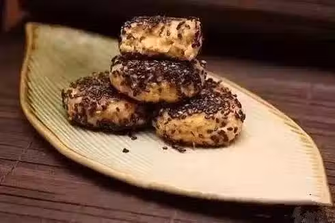 3、將步驟1、2與麵粉拌勻,做成小餅狀,撒上黑芝麻。