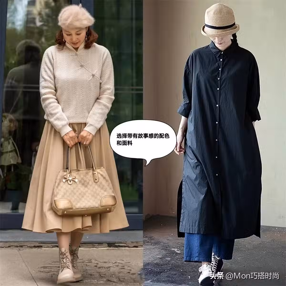 老了還要給裙子「做做減法」。不管選款還是搭配,同一個位置和單品上的設計元素都別超過三種。