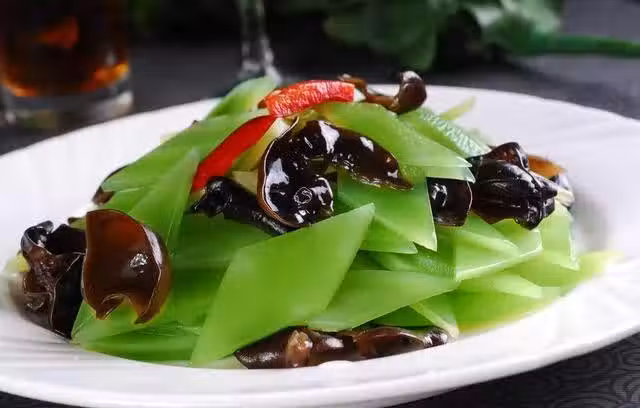 青筍 500克、木耳 100克、紅椒 20克、蒜 15克、食用油 適量、鹽 1茶匙、糖 0.5茶匙、蚝油 1茶匙、生粉 1茶匙