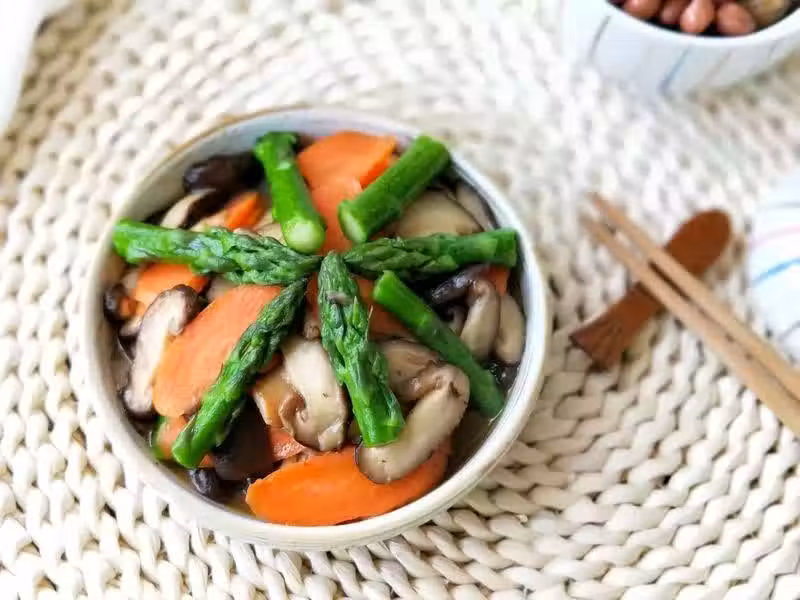 1. 蘆筍切段,胡蘿蔔切片,香菇切片