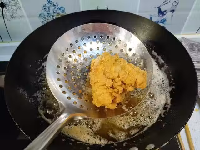 3、炸翅根時,中火炸定型後轉為中小火慢炸,炸3-4分鐘左右,確保內部熟透。