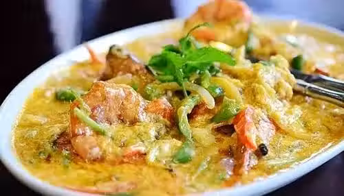 主輔料:鮮蝦、泰式紅咖喱醬、蔥頭、牛奶、青辣椒、澱粉、胡椒粉、料酒、食用油