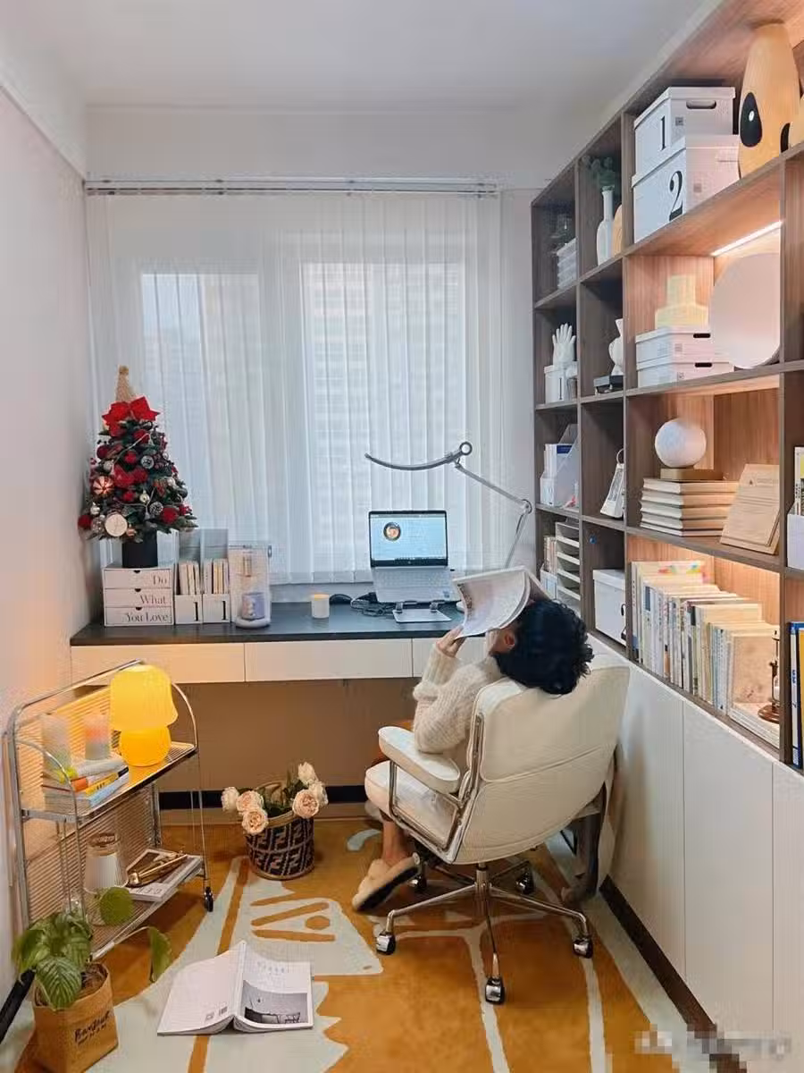 另外靠窗而設的懸浮式書桌也不錯,這樣工作或學習累了還可以眺望室外的風景用於舒緩神經。