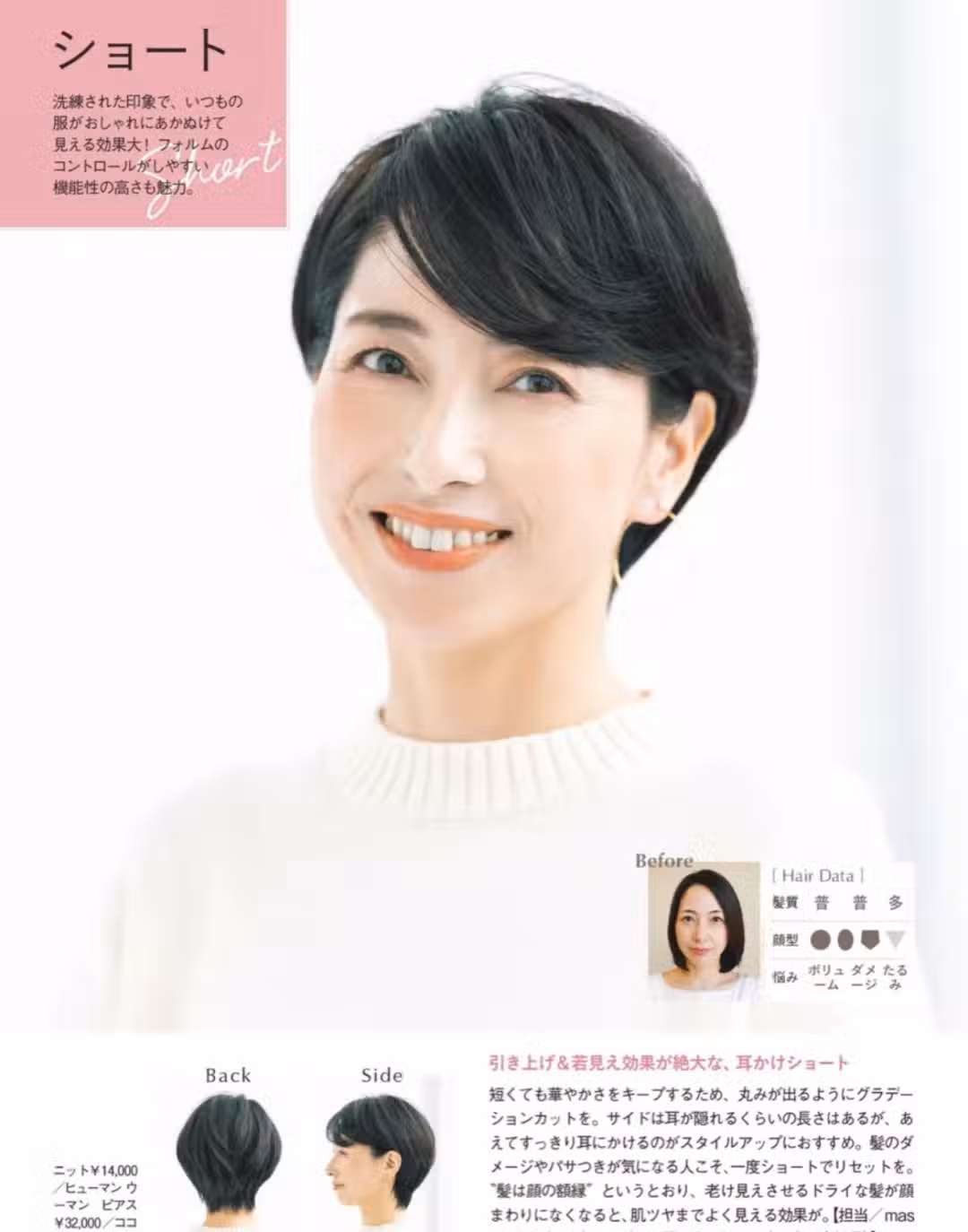 掛耳短髮,長度比較短,最怕中性味過了頭,所以剪短頭髮之後,一定要在直線髮型上加入一些捲曲的弧度。下圖這個造型,剛剛好是露出耳朵的長度,圓潤飽滿的髮型弧度保留厚重的肌理感,這樣就能視覺上形成頭包臉的效果,顯臉小顯毛髮旺盛。 然而太直的短髮就容易給人生硬印象,所以讓髮絲從頭頂到臉頰兩側都縈繞上張弛有度的繾綣弧度,整體看上去就很有性感華麗的女人味了▼