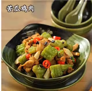 材料:雞肉,苦瓜,豆瓣醬,豆豉,蒜蓉,蠔油 做法: 1.先用蒜米炒香雞肉,半熟時加入一大匙豆瓣醬,豆豉,1湯匙蠔油。2.炒均勻後,加入苦瓜再炒一會。3.加入適量水分。4.汁收到差不多,加點鹽,糖即可。