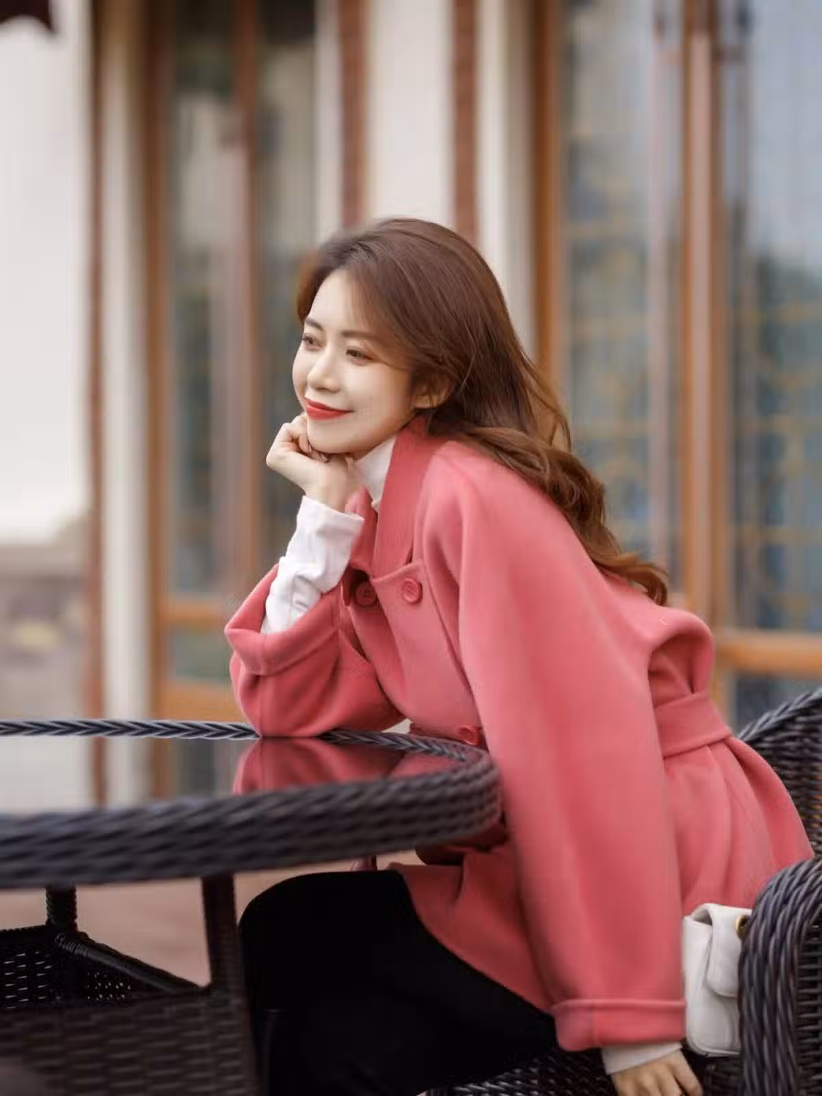 坐著拍照的時候,手不知道怎麼放也很容易擺出剪刀手,這時候,可以讓自己手肘撐著桌面,手掌托腮就很自然漂亮啦。
