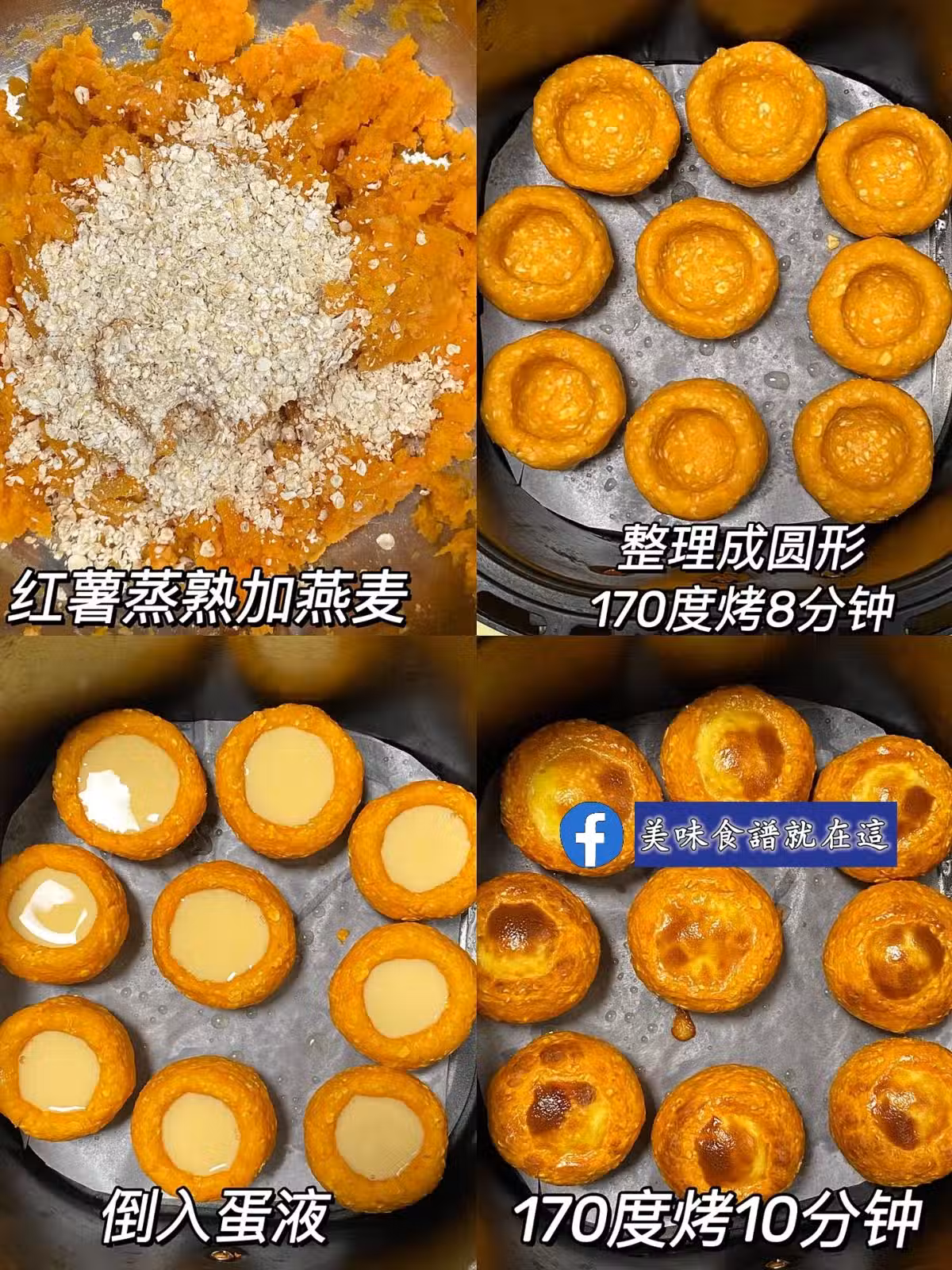 4️⃣蛋液倒入紅薯皮,170度10分鐘即可!