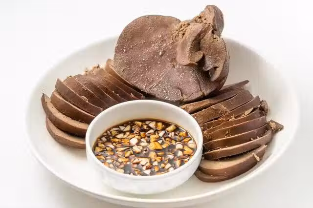 食材:豬肝、蔥姜、八角、香葉、桂皮、草果、鹽、料酒