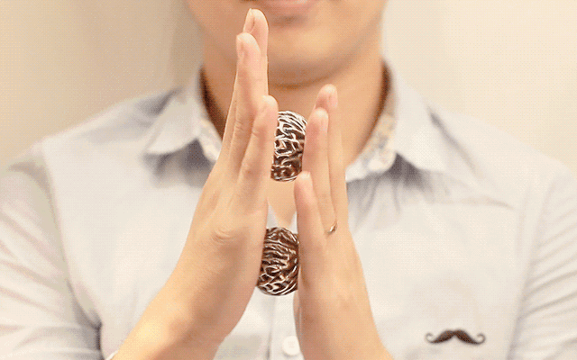 雙手分別持兩個核桃,用大拇指、食指和中指將其包裹在內,攥拳頭一樣地反復揉搓,全面利用核桃身上大筋和紋路磨壓掌心和指肚、指節壁,直至有酸痛的感覺為止。