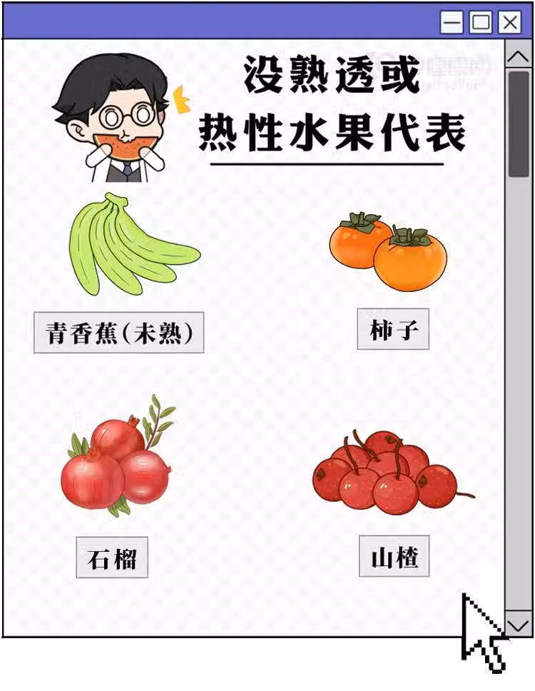 沒熟的水果中 含有大量鞣酸,吃了後可與胃酸發生反應,產生沉澱,較難消化吸收,因此可能導致腸道收縮和乾燥,進而引起便秘。而熱性水果可能會導致體內濕氣增加,進而影響消化功能和腸道蠕動,增加便秘幾率。