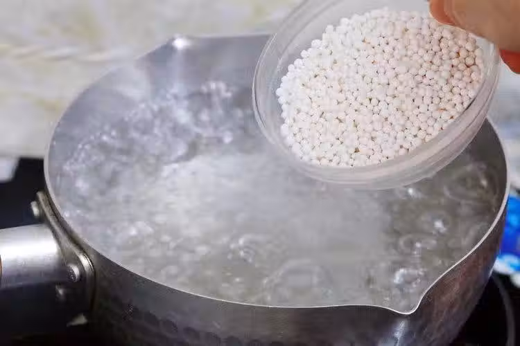 5、將西米煮制一下,然後將西米煮至裡面只有白心的時候關火,關上蓋子燜煮熟透即可。