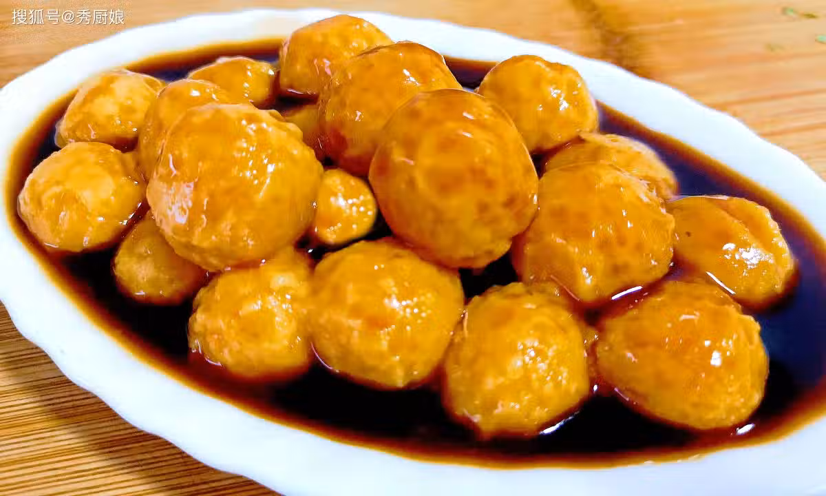 3.鍋內加水燒開,放入丸子,將丸子煮熟,然後撈出裝盤,鍋內加少量水放入紅糖和水澱粉,煮沸,製成芡汁,將芡汁澆在丸子上即可。