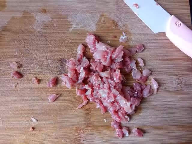 2.肉丁加鹽、料酒和醬油腌制一下。