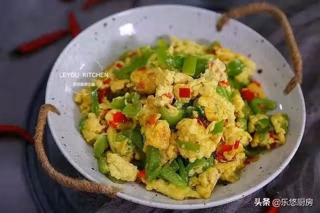 第四步:把尖椒碎和剁椒放入雞蛋液中。