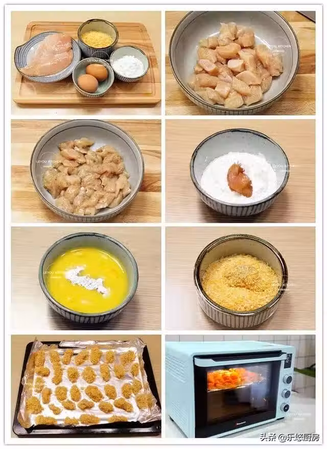 5、麵包糠有兩種顏色,一種是白色一種是黃色,用烤箱做雞米花,建議大家用黃色的麵包糠,這樣烤好後顏色更加誘人。