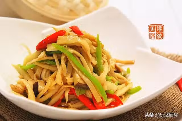 第二步:把杏鮑菇撕成條、尖椒切絲、紅辣椒切絲、蒜切末備用。