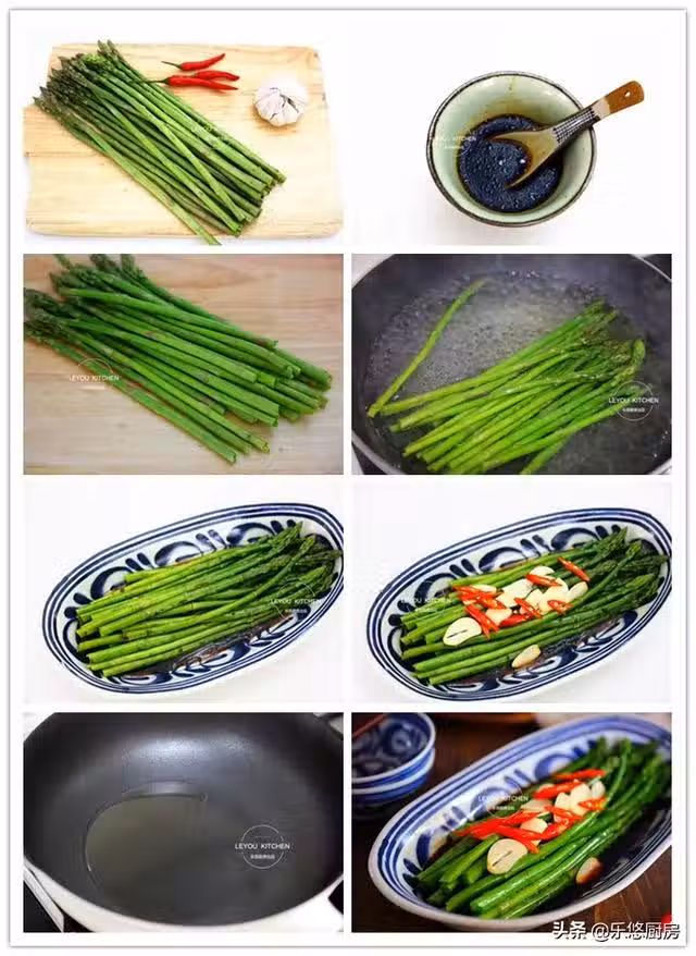 第八步:將熱油澆上蘆筍上,這道菜就做好了。
