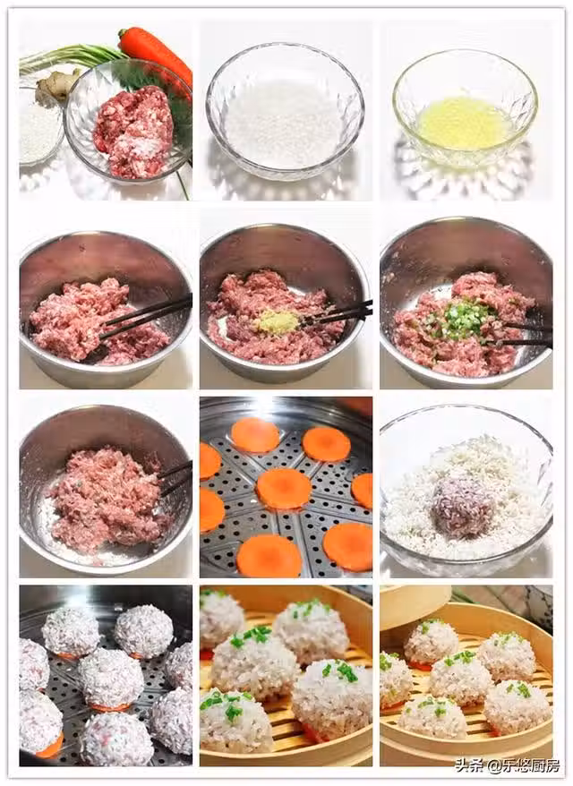 第九步:取適量肉餡放入在手中,揉成肉圓。然後放進瀝干水份的糯米中,讓肉圓表面粘滿糯米。