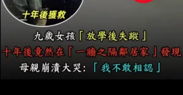 九歲女孩「放學後失蹤」十年後竟然在「一牆之隔鄰居家」發現, 母親崩潰大哭:「不敢相認」!