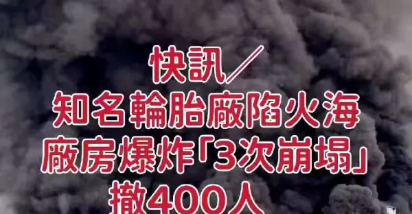 快訊/知名輪胎廠陷火海!廠房爆炸「3次崩塌」撤400人!毒氣狂飄燒數日!