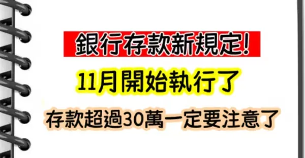 銀行存款新規定!11月開始執行了,存款超過30萬一定要注意了…