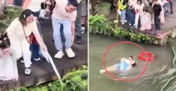 女遊客景區「不慎落水」,陌生小伙「下水施救」不料令人噁心一幕發生了