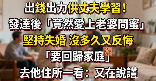 出錢出力供丈夫學習!發達後「竟然愛上老婆閨蜜」堅持失婚 沒多久又反悔「要回歸家庭」去他住所一看:又在說謊