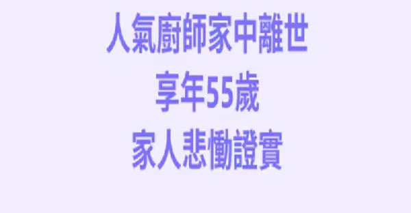 快訊/人氣廚師「家中離世」 享年55歲!