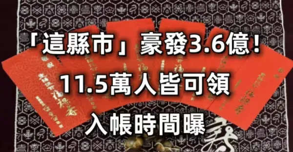 快訊/「這縣市」豪發3.6億!11.5萬人皆可領 入帳時間曝...
