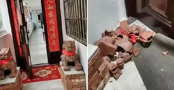 他擺石獅擋煞反遭鄰居「鐵錘砸毀」!怒理論後…被對方1句話點醒:當即賠禮道歉