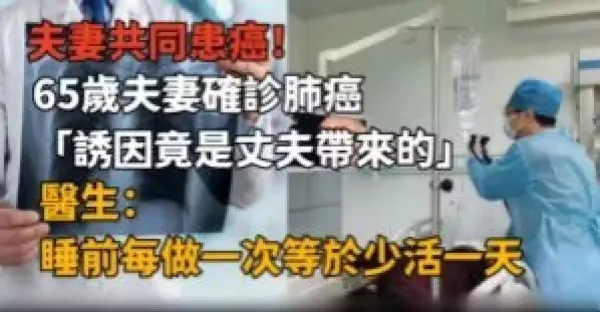 夫妻共同患癌!65歲夫妻確診肺癌「誘因竟是丈夫帶來的」 醫生提醒:睡前每做一次等於少活一天!