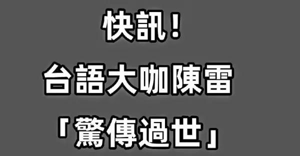 快訊/台語大咖陳雷「驚傳過世」!!